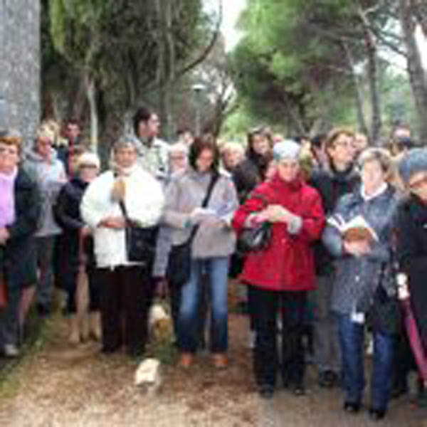 Četvrte korizmene nedjelje, 26. ožujka, održana je pobožnost križnog puta duž naselja Sveti Pelegrin. U Križnom putu sudjelovali su mnogobrojni svećenici, kapelani te vjernici iz župa Umaško-oprtaljskog dekanata, zajedno sa svojim dekanom Josipom Grpcem. Procesiju je pratio Umaški mješoviti crkveni pjevački zbor prigodnim korizmenim napjevima. U razmatranja tijekom pobožnosti bile su uključene mnoge aktualne problematike osobne i društvene naravi. Vjernici, koji su se okupili iz svih dijelova Umaško – oprtaljskog dekanata, izmjenjivali su se u čitanju razmatranja te nošenju križa. Po završetku križnog puta okupljeni građani nastavili su se družiti na domjenku uz obalu mora.